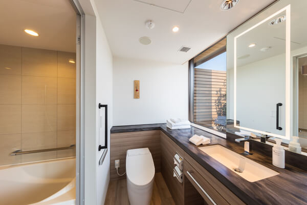 | Room features | Simmons premium brand "Beautyrest LUXE Series" 8.25" coil beds, pajama tops/bottoms, 55V 4K TV, free internet connection (Wi-Fi only), air purifier/humidifier, safety deposit box, refrigerator, electric kettle, Nanoe hair dryer, desk mirror, clothing deodorizer, clothing brush, bathroom with washing area, washlet toilet with heated toilet seat, teapot, mugs, tumblers, alarm clock |