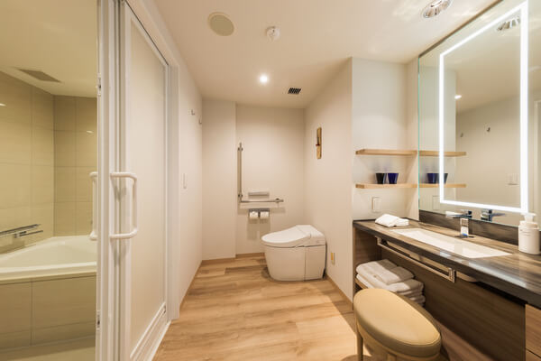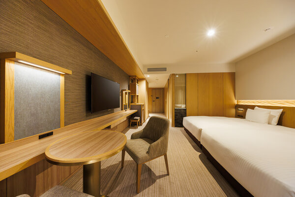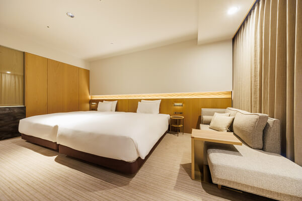 | Room facilities | Simmons premium brand "Beautyrest LUXE Series" 8.25" coil beds, pajama tops/bottoms, 55V 4K TV, free internet connection (Wi-Fi only), air purifier/humidifier, safety deposit box, refrigerator, electric kettle, Nanoe hair dryer, desk mirror, clothing deodorizer, clothing brush, bathroom with washing area, washlet toilet with heated toilet seat, teapot, mugs, tumblers, alarm clock |