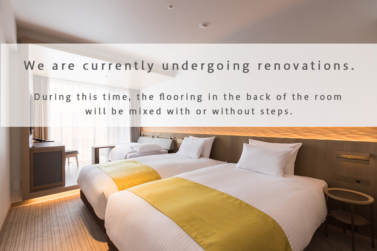Our corner rooms offer a view of the red Tori gate of Tsurugaoka Hachimangu Shrine from the floor to ceiling windows, providing a true taste of Kamakura from your room. Furnished with two 140 cm-wide beds and a spacious layout, these rooms also provide a convenient double basin and overhead rain shower in the bathroom.